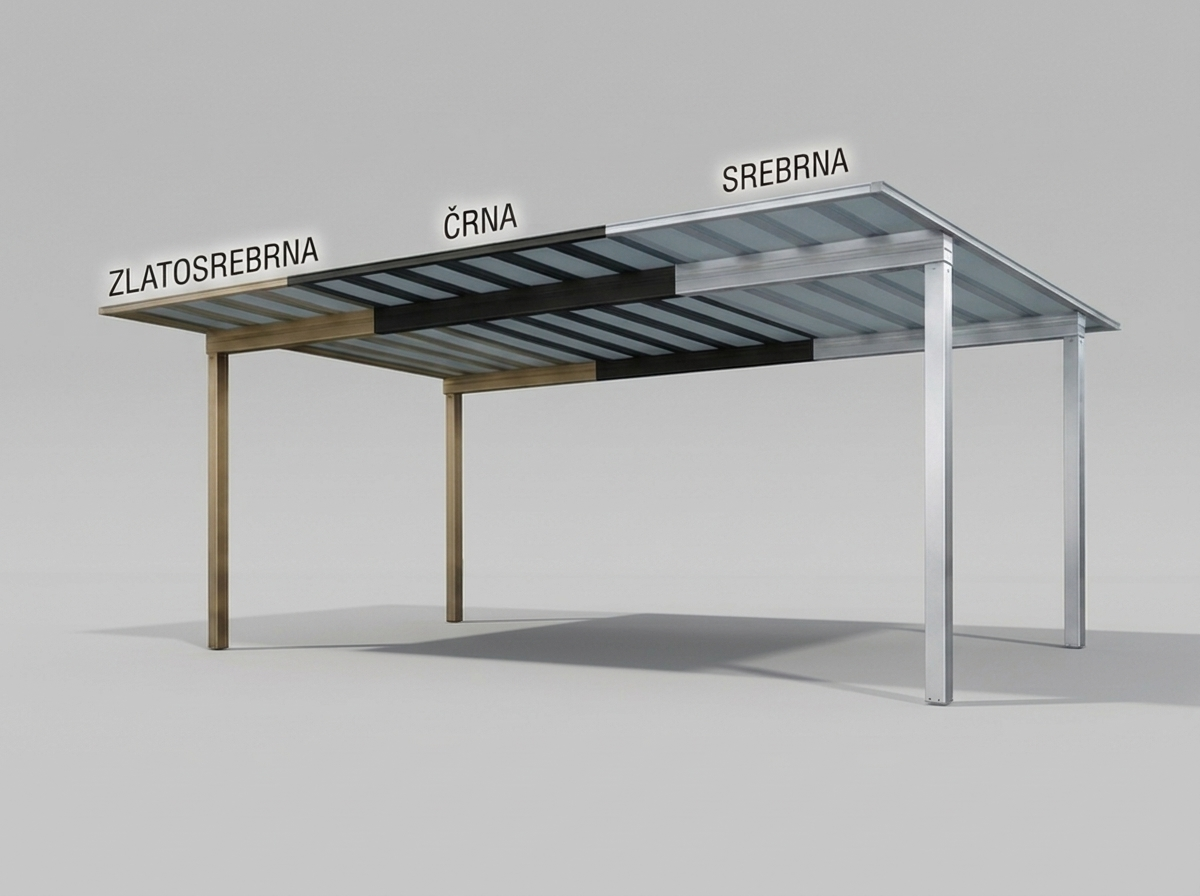 - poleg osnovnih treh barv je za doplačilo možno tudi barvanje nadstreška v vse barve po RAL lestvici