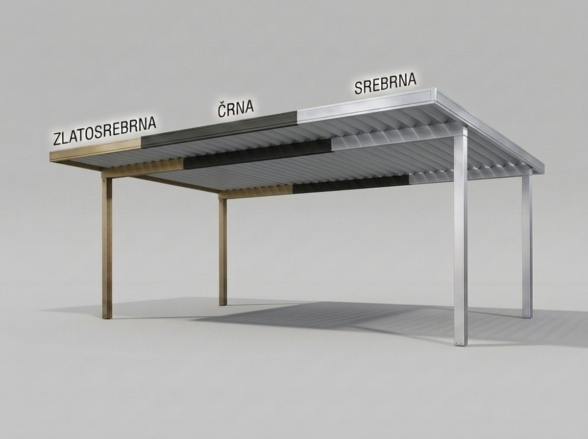 - poleg osnovnih treh barv je za doplačilo možno tudi barvanje nadstreška v vse barve po RAL lestvici